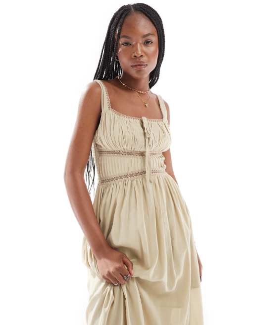 ASOS DESIGN Robe d ete longue style champetre avec bordures en dentelle et fronces Taupe ASOS Very well made.