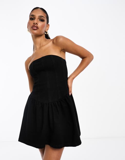 ASOS DESIGN Robe courte plissee sans bretelles en jean Noir delave ASOS Very well made.
