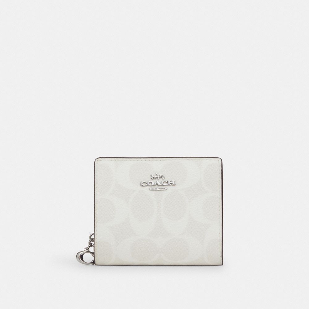 Silver Chalk Glacier White Snap Wallet In Signature Canvas Very well made.