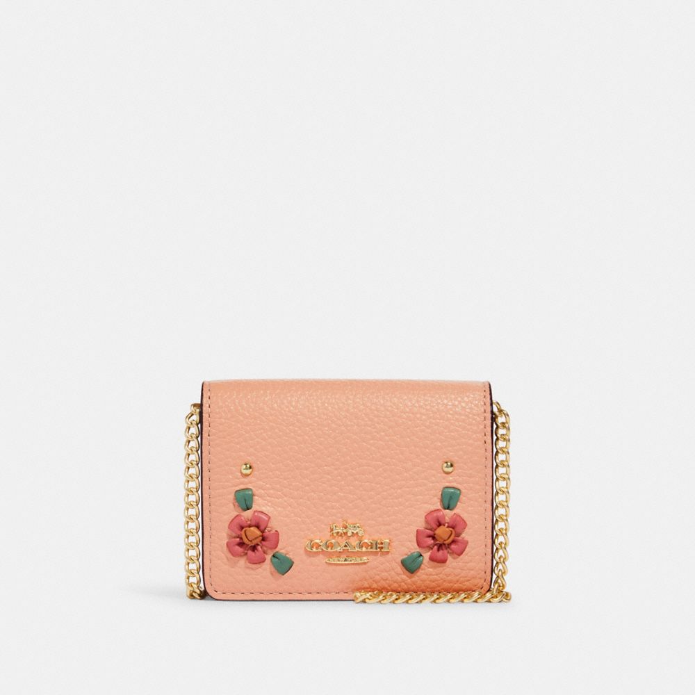 COACH Mini Wallet On A Chain With Floral Whipstitch Very well made.