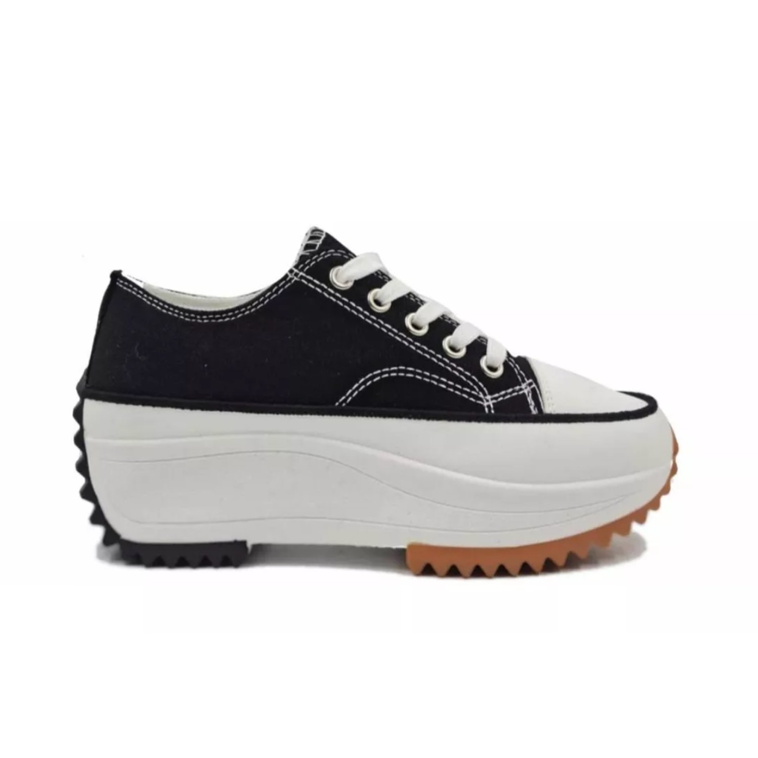 Zapatillas de lona abotinadas suela plataforma mujer color negro Very well made.