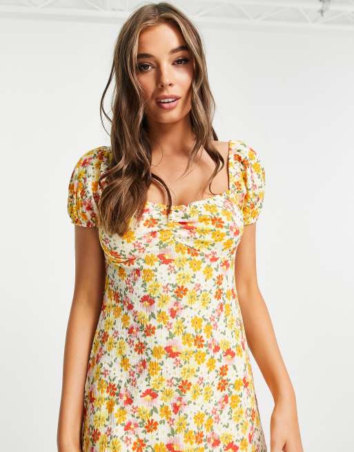 Stradivarius Robe courte tendance folk Jaune fleuri Very well made.