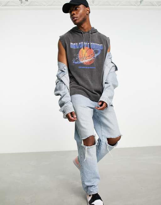 ASOS DESIGN Gilet a capuche oversize avec imprime style basketball universitaire sur le devant Noir delave Very well made.