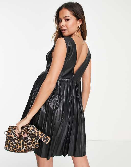 ASOS DESIGN Maternity Robe courte plissee imitation cuir Noir Very well made.