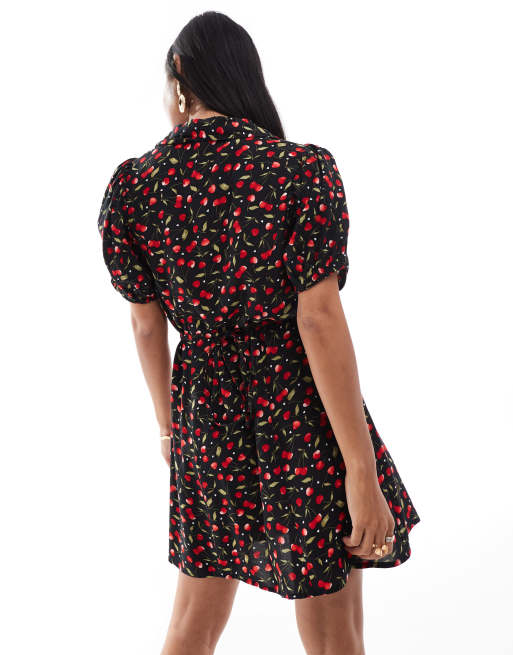 Miss Selfridge Petite Robe courte boutonnee Imprime cerises Very well made.