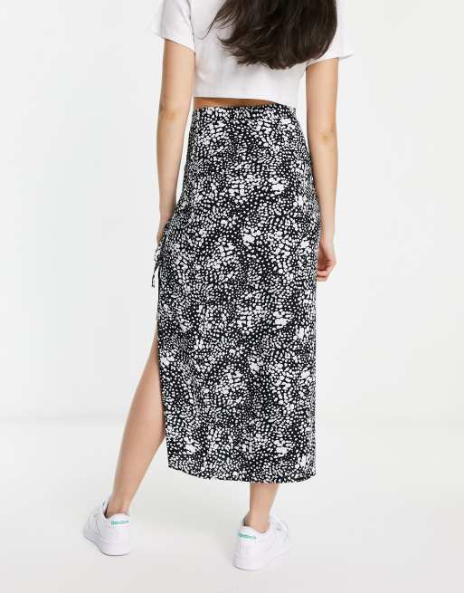 ASOS DESIGN Jupe fendue mi longue a detail noue et imprime tachete Noir et blanc Very well made.